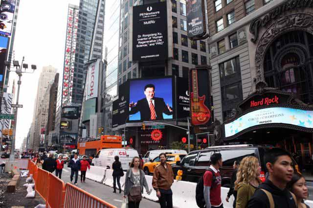 昨天,路透社第一時(shí)間發(fā)布了徐榮教授道出起訴諾貝爾獎(jiǎng)委員會(huì)原因的新聞,同時(shí)在紐約時(shí)代廣場(chǎng)的新聞大屏幕上刊出徐榮祥教授的另一幅照片,稱(chēng)徐榮祥是人體再生復(fù)原科學(xué)和PRC細(xì)胞發(fā)明人。