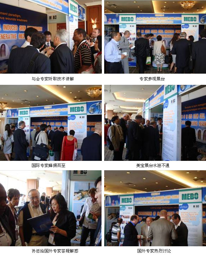 在大會(huì)主題發(fā)言后,各國(guó)專家紛紛來(lái)到美寶展臺(tái)參觀學(xué)習(xí)。大面積燒傷的完美愈合、各種久治難愈創(chuàng)面的成功救治,以及斷指再生等再生科學(xué)成就深深吸引并震撼了眾多與會(huì)代表,他們?nèi)琊囁瓶柿肆私馊梭w原位復(fù)原再生科學(xué)的奧秘,最多的時(shí)候,很多專家一擁而上瘋搶再生醫(yī)學(xué)的資料。同時(shí),我們也很高興地遇到很多已經(jīng)了解并使用過(guò)美寶的中東及東南亞的老朋友!很多已經(jīng)應(yīng)用過(guò)MEBO/MEBT的專家與美寶工作人員熱情交流,暢敘友情。表明近幾年的市場(chǎng)開(kāi)發(fā)及醫(yī)療推廣取得了較好的成效。