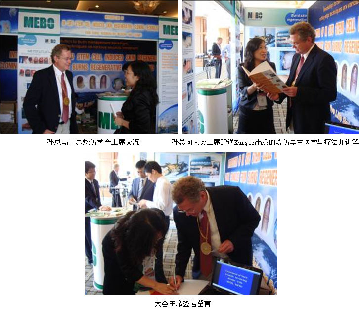 特別值得一提的是國(guó)際燒傷學(xué)會(huì)主席,美國(guó)的羅納德 霍普金斯主席也應(yīng)邀興致勃勃的趕到美寶的展位,與集團(tuán)國(guó)際市場(chǎng)總部總裁孫霞探討再生科學(xué)在燒傷領(lǐng)域的指導(dǎo)性作用。集團(tuán)總裁孫霞熱情洋溢的介紹了燒傷再生醫(yī)學(xué)在燒傷、體表潰瘍、不愈合慢性創(chuàng)面的臨床應(yīng)用,以及所取得的臨床治療效果,以及今后的多方面合作等,并代表再生科學(xué)的創(chuàng)始人徐榮祥教授正式邀請(qǐng)羅納德 霍普金斯主席訪問(wèn)美寶。羅納德霍普金斯主席在交流后,興奮地說(shuō):“燒傷治療及再生的發(fā)展速度真讓人難以自信,美寶技術(shù)及濕潤(rùn)燒傷膏很好的臨床治療效果。希望以后能夠有機(jī)會(huì)親自考察燒傷再生療法與美寶濕潤(rùn)燒傷膏治療燒傷病人的情況。