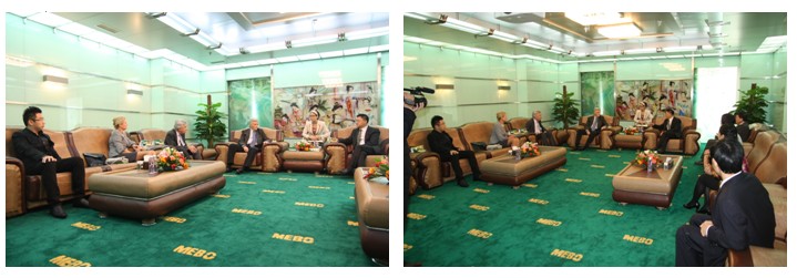 美寶集團(tuán)董事局主席、人體再生復(fù)原科學(xué)的創(chuàng)始人徐榮祥教授,帶領(lǐng)集團(tuán)四位總裁對(duì)三位貴賓的來訪表示了熱烈的歡迎。徐榮祥教授向來賓簡單介紹了美寶集團(tuán)的發(fā)展歷史和美寶現(xiàn)狀以及未來規(guī)劃,使三位來賓對(duì)美寶的企業(yè)發(fā)展有了更全面的了解。
