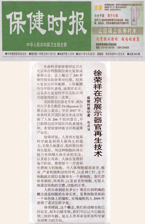 保健時報:徐榮祥在京展示器官再生技術(shù)