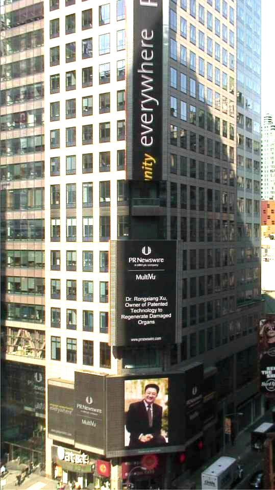 今日,國際頂級地標(biāo)紐約時代廣場新聞報道美國總統(tǒng)發(fā)展“損傷器官再生”國策專利權(quán)人、人體再生復(fù)原科學(xué)發(fā)明人徐榮祥教授。