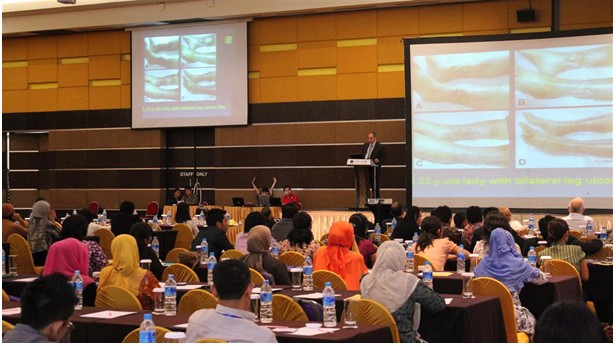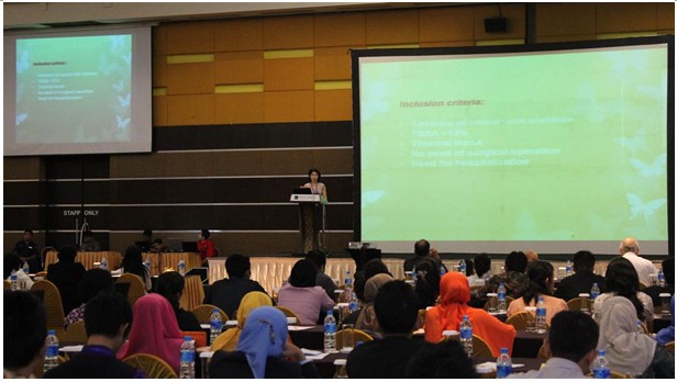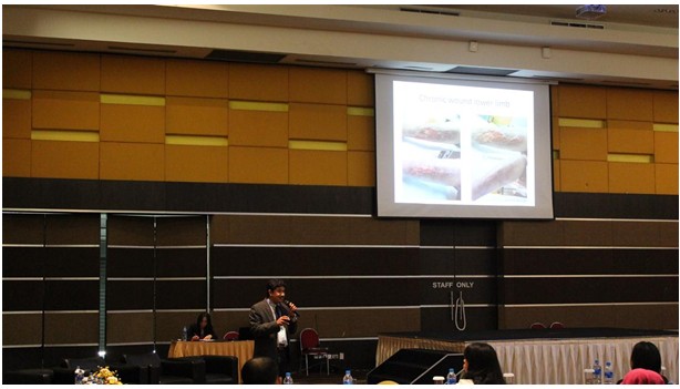 與此同時,在第二分會場,來自中國中西醫(yī)結(jié)合學會燒傷專業(yè)委員會的張美艷介紹了再生技術(shù)在難愈性創(chuàng)面治療中的顯著效果,恰當介紹了K-19干細胞的研究成果及再生療法治療糖尿病潰瘍的研究機理,并展示了經(jīng)典的治療案例,讓每一位參會人員對再生療法的神奇療效有目共睹,嘆為觀止!有位印尼的穆斯林外科醫(yī)生表示出了極大的興趣,會后要求發(fā)送相關(guān)研究資料。