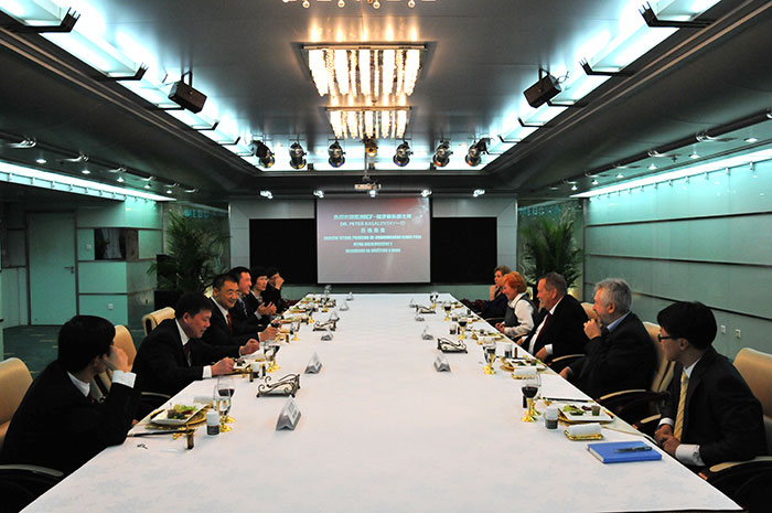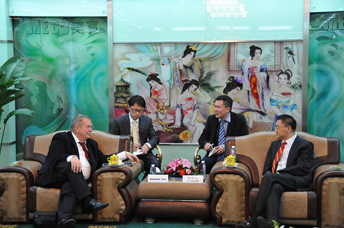 美寶國(guó)際集團(tuán)董事局主席徐榮祥教授對(duì)Dr. Kasalovsky一行的來(lái)訪進(jìn)行了盛情的接待,集團(tuán)總裁楊智斌、副總裁張倩、陳寶琪、孫霞在場(chǎng)陪同。