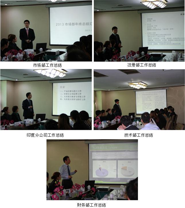上午的會議主題為2013年總結(jié),國際市場集團(tuán)各部門負(fù)責(zé)人由吳云、張印、陳剛、舒葉、肖舸、樂盛華、劉林、張京艷分別就各自所轄部門2013年的工作總結(jié)進(jìn)行了詳細(xì)地匯報,總結(jié)了2013年取得剖析工作中存在的不足,提出了基本的工作改進(jìn)思路。隨后,孫總就各部門的工作總結(jié)分別針對性地進(jìn)行了精準(zhǔn)地點評,一方面肯定了國際市場集團(tuán)在面臨2013國際市場遇到的多項客觀阻力的前提下所取得的成績,特別是在整體銷售回款目標(biāo)任務(wù)完成;另一方面針對各部門工作存在的不足,包括各市場終端活動掌握的匱乏,分公司工作進(jìn)度緩慢及經(jīng)營模式無突破等方面,一陣見血地提出了批評并分別做出了明確的改進(jìn)要求。