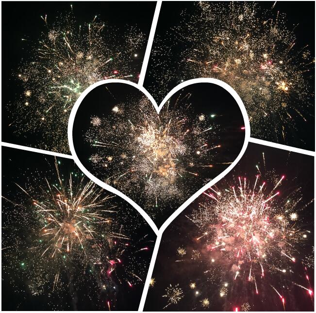 晚上,絢爛的煙火在高空綻放,凝聚成耀眼的光,匯聚成燦爛的花,照亮美寶光輝歲月。