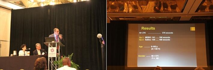 8月30日上午,MohamedSakr教授以“Assessmentof Regenerative Therapy (MEBT/MEBO) in Healing ofVariousOpen Wounds: A Multicenter Controlled Randomized Trial”為題發(fā)表了燒傷再生醫(yī)學(xué)在260余例燒傷、創(chuàng)傷、糖尿病足潰瘍領(lǐng)域應(yīng)用的研究報告,深深吸引了在座參會專家。