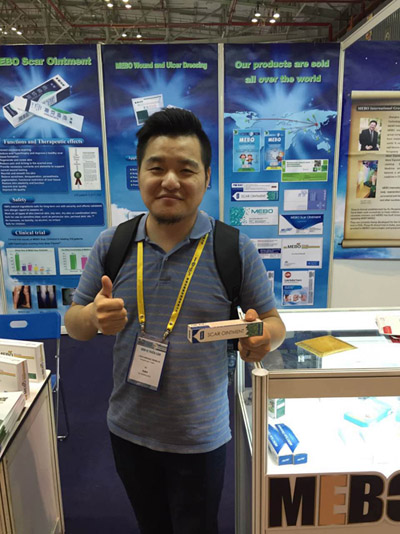 一位來自俄羅斯的帥哥客戶,在聽了美寶工作人員對(duì)美寶國(guó)際以及徐榮祥教授的介紹之后,表示美寶的燒傷與創(chuàng)傷的科技成果將會(huì)幫助很多俄羅斯病人恢復(fù)重生,美寶的產(chǎn)品正是他們苦苦尋找的,流露出一種“眾里尋他千百度”的惆悵與“那人卻在燈火闌珊處”的驚喜。臨走的時(shí)候,帥哥不僅送給美寶工作人員一瓶伏特加作為禮物,還特地對(duì)著美寶的LOGO豎起一個(gè)大拇指,連聲稱“贊”。