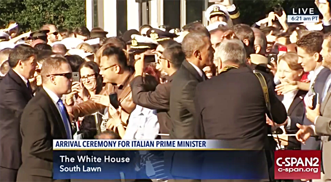 上午,盛大的國(guó)賓歡迎儀式在白宮南草坪舉行,19聲禮炮,閱兵,軍樂表演等儀式依次展開,兩國(guó)領(lǐng)導(dǎo)人巡視完三軍隊(duì)列后與到場(chǎng)貴賓依次握手寒暄表示熱情歡迎,看到徐鵬總裁,奧巴馬明顯非常高興,握手同時(shí)還給了個(gè)親兄弟式的大大的擁抱。隨后奧巴馬和倫齊分別發(fā)表講話,表達(dá)對(duì)雙方國(guó)家的關(guān)注和深化兩國(guó)友誼與合作的意愿。