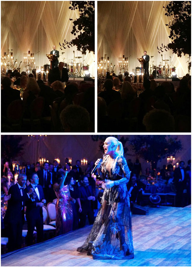 本次國(guó)宴請(qǐng)來聲名顯赫的大廚Mario Batali,他為這次美國(guó)的“頂級(jí)飯局”精心制作了四道美味的意式菜肴,前菜:意大利甘薯肉餃配黃油;沙拉:南瓜沙拉配羊乳干酪;主菜:西蘭花牛肉卷配有機(jī)甘藍(lán),山脊酒莊紅酒;甜點(diǎn):意式青蘋果水果塔,百里香焦糖酪乳意式冰淇淋;此外,還有根據(jù)季節(jié)特制的甜品拼盤,包括:提拉米蘇,黑莓慕斯,提子巧克力杯,香橙味奶油配無花果蛋糕,蔓越莓南瓜派。餐后,奧巴馬和倫齊分別致辭感謝對(duì)方和來賓,奧巴馬贊揚(yáng)41歲的倫齊年輕有為,將會(huì)是未來的世界領(lǐng)袖。隨后在場(chǎng)眾人共同欣賞了有意大利血統(tǒng)的著名美國(guó)歌手Gwen Stefani 的精彩表演,國(guó)宴于近午夜時(shí)分圓滿結(jié)束。