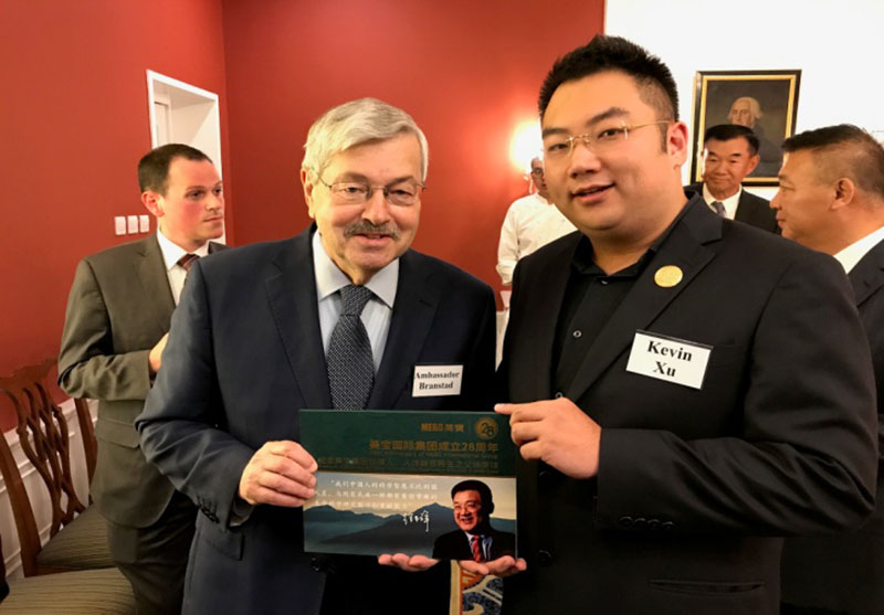 2017年9月14,美國駐華大使布蘭斯塔德及其夫人在北京的大使官邸舉行晚宴招待重要的美國駐華使領(lǐng)館官員以及政商領(lǐng)袖,答謝大家對促進中美經(jīng)濟發(fā)展和友好關(guān)系做出的巨大貢獻并期待在其任期內(nèi)使中美的發(fā)展更進一步。美寶集團董事局主席徐鵬應(yīng)邀出席晚宴并贈送徐榮祥紀念郵票冊給布蘭斯塔德大使。
