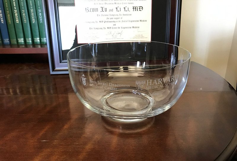 2017年10月6號,美寶集團(tuán)總裁徐鵬作為中心董事出席了哈佛醫(yī)學(xué)院BIDMC徐榮祥再生治療中心董事會,聽取了中心主任Dr. Aristidis Veves關(guān)于徐榮祥再生治療中心的年度工作報告,中心正式成立并運行一年多來已培訓(xùn)數(shù)名中國進(jìn)修醫(yī)護(hù)人員,在國際期刊發(fā)表徐榮祥再生治療中心為署名機構(gòu)的論文十幾篇,成功舉辦了第一屆徐榮祥中心年度論壇(糖尿病下肢病變研討會:從創(chuàng)新到療法),與天津泰達(dá)國際心血管病醫(yī)院以及廣州暨南大學(xué)華僑醫(yī)院等建立了合作關(guān)系,來年中心因為規(guī)模擴大基礎(chǔ)研究部分將會搬入新的更大的實驗室。 徐鵬總裁對中心一年來的工作予以了肯定,并與中心其他董事包括美國科學(xué)院醫(yī)學(xué)部院士、BIDMC大外科主任Dr. Elliot Chaikof,徐榮祥中心主任Dr.Veves和電話參會的徐榮祥基金會秘書長Dr. Eric Wang深入探討了中心未來2-5年的發(fā)展目標(biāo)和工作規(guī)劃,中心的發(fā)展宗旨是建立一個再生治療學(xué)領(lǐng)域領(lǐng)先世界的研究、教育和科技轉(zhuǎn)化影響力品牌。Dr. Chaikof代表哈佛醫(yī)學(xué)院向徐鵬總裁和徐榮祥基金會李俐主席頒發(fā)了謝狀并贈送了刻字紀(jì)念的水晶碗,以感謝他們深具遠(yuǎn)見的領(lǐng)導(dǎo)力和對再生治療學(xué)事業(yè)的大力支持。
