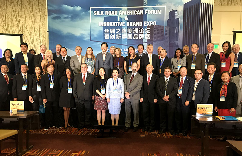 2017年11月2日,“絲綢之路 美洲論壇”在洛杉磯市中心萬(wàn)豪酒店舉辦。來(lái)自中國(guó)、巴拿馬、加拿大及美國(guó)當(dāng)?shù)氐恼⑸碳爸菐?kù)名人約200人出席了此次大會(huì)。此為首次主流經(jīng)貿(mào)論壇,主要議題探討沿太平洋商路的往昔與未來(lái),從實(shí)務(wù)的角度分析與研究環(huán)太平洋地區(qū)貿(mào)易發(fā)展的狀況與未來(lái)合作前景,形成高端人脈與企業(yè)高效交流互動(dòng),并達(dá)成了諸多合作意向與合作成果。