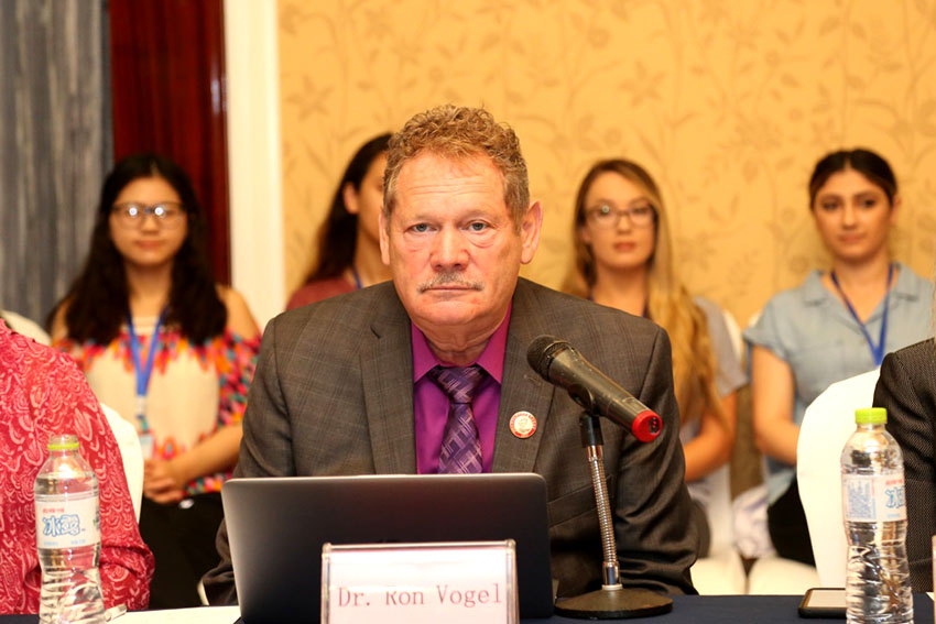徐榮祥徐健康與公眾服務(wù)學(xué)院院長(zhǎng)Ronald Vogel在儀式上發(fā)表講話,他對(duì)徐榮祥基金會(huì)支持發(fā)起的此次難得的學(xué)習(xí)機(jī)會(huì)深表感謝。他相信這樣的機(jī)會(huì)對(duì)于來到中國的這批特別甄選的護(hù)理學(xué)院和社工學(xué)院的優(yōu)秀學(xué)生乃至整個(gè)院系都是很好的歷練機(jī)會(huì)。他說,我們現(xiàn)在在中國又有了一個(gè)大家庭,我們所有的人都因?yàn)樾鞓s祥教授的價(jià)值觀和信仰而更好的聯(lián)結(jié)在了一起。我們專注于治療,滿足人們的各種需求,并一起努力消除人類的痛苦。