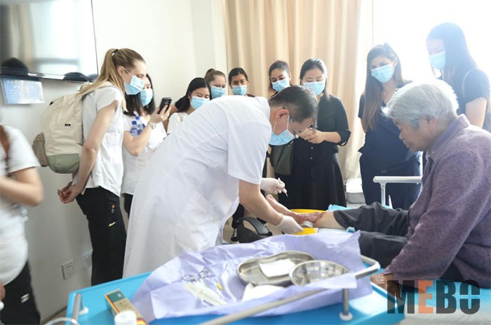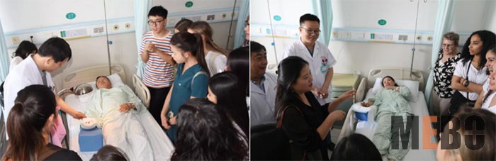 接著師生一行參觀了病房,醫(yī)生為學(xué)生們示范并講解了美寶濕潤燒傷膏的用藥規(guī)范和治療創(chuàng)面的方法。