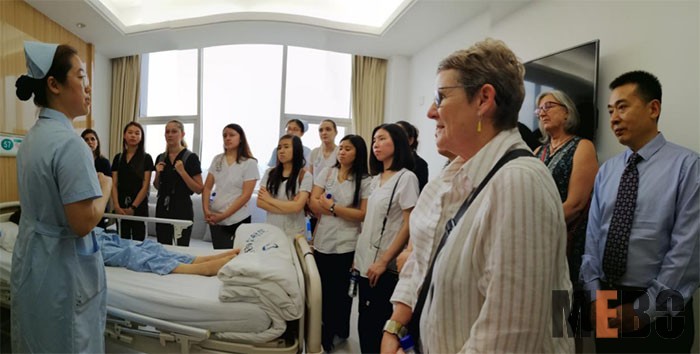 接著院方帶領(lǐng)大家參觀了醫(yī)院的護(hù)士站,學(xué)生們現(xiàn)場觀摩了護(hù)士的操作規(guī)范和流程。