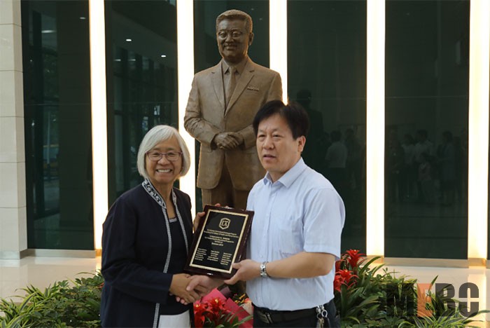 6月6日,訪學(xué)團(tuán)來到了徐榮祥教授的母校——濱州醫(yī)學(xué)院,護(hù)理學(xué)院院長劉衛(wèi)東、黨總支書記趙美、副院長范燕燕以及相關(guān)老師等熱情接待了來訪團(tuán)。大家一起來到“榮祥樓”一樓大廳,在徐榮祥教授的銅像前,校方老師羅倩倩對(duì)大家的到來表示歡迎,并隆重向師生團(tuán)介紹了徐榮祥教授和濱州醫(yī)學(xué)院的深厚淵源,接著訪學(xué)學(xué)生代表向徐榮祥銅像獻(xiàn)花以示感謝與敬意。