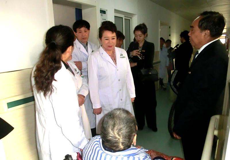 參觀完門診區(qū),來到二樓綜合內科病區(qū),朱登玲副院長介紹了病區(qū)的發(fā)展情況,重點介紹了新開展的醫(yī)養(yǎng)結合項目,該項目是在治療各類內科疾病的基礎上,新增以慢性重癥患者為主而開展的,通過一年多的探索與實踐,已經成為內科病區(qū)的一大特色,并成為當?shù)貙W習典范,得到了政府主管部門的肯定,多次接待政府組織的其他醫(yī)療機構的參訪和經驗交流,并取得了一定的社會信譽。李俐走進病房與老人進行親切的交談,了解醫(yī)養(yǎng)結合服務情況,當老人們紛紛表示非常滿意的時候,李俐感到非常欣慰。