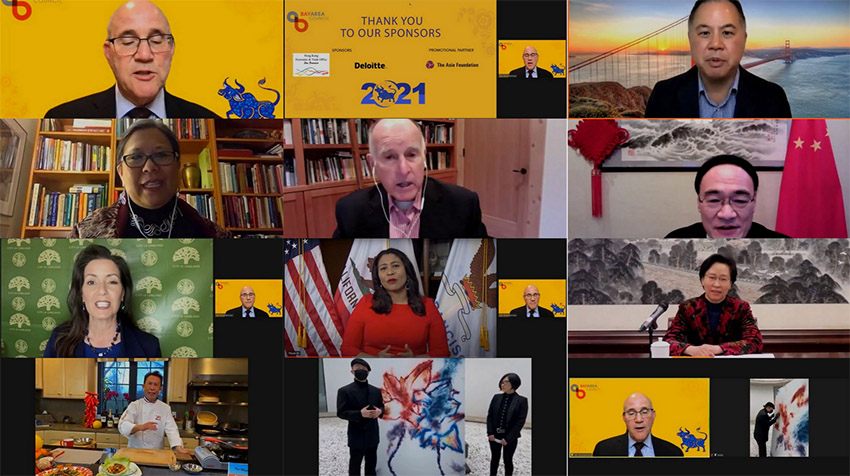 下午5點(diǎn),新年慶?;顒?dòng)正式開(kāi)幕,美國(guó)加州政府、中國(guó)上海楊浦等各區(qū)政府,以及江蘇省、廣東省、南京市、深圳市、九江市等各省市政府代表參會(huì)。中美雙方代表在線祝賀并致辭,共同為中國(guó)農(nóng)歷新年送上誠(chéng)摯的祝福和希冀,大家期待在新的2021年能為建設(shè)更加和諧穩(wěn)定的中美關(guān)系與更美好繁榮的世界而攜手并肩,戮力前行。