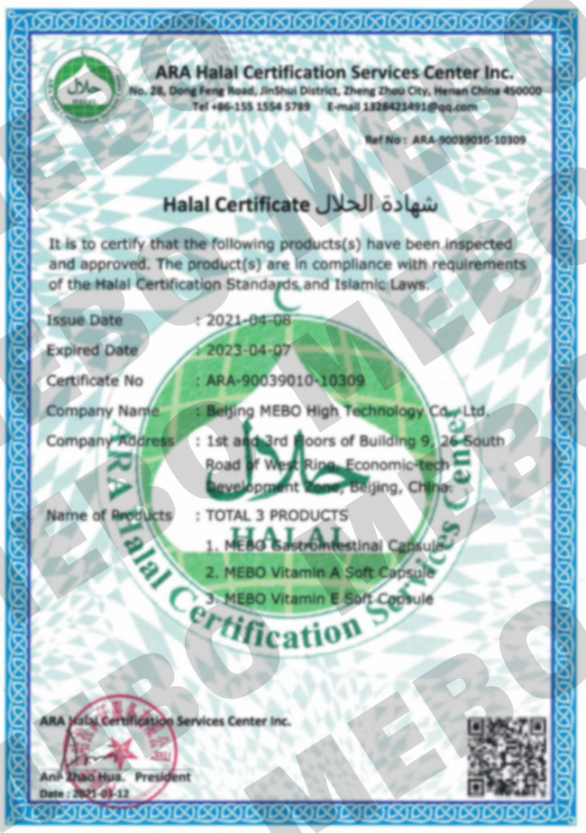 2021年3月12日,美寶集團(tuán)旗下北京美寶高科技有限責(zé)任公司(簡稱北京美寶高科)順利通過ARA認(rèn)證機(jī)構(gòu)的Halal認(rèn)證。這是北京美寶高科技有限責(zé)任公司首次升級完成兩年一次的Halal認(rèn)證,標(biāo)志著北京美寶高科技有限責(zé)任公司生產(chǎn)的美寶牌胃腸膠囊能夠在世界上大多數(shù)伊斯蘭國家進(jìn)行銷售。