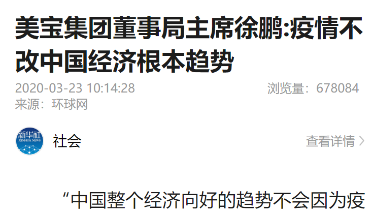 環(huán)球網(wǎng):美寶集團(tuán)董事局主席徐鵬:疫情不改中國經(jīng)濟(jì)根本趨勢