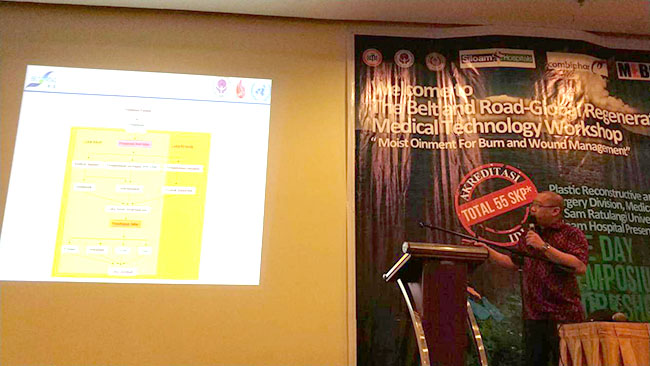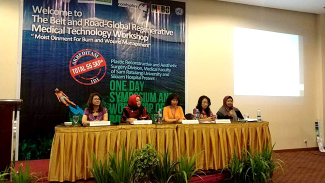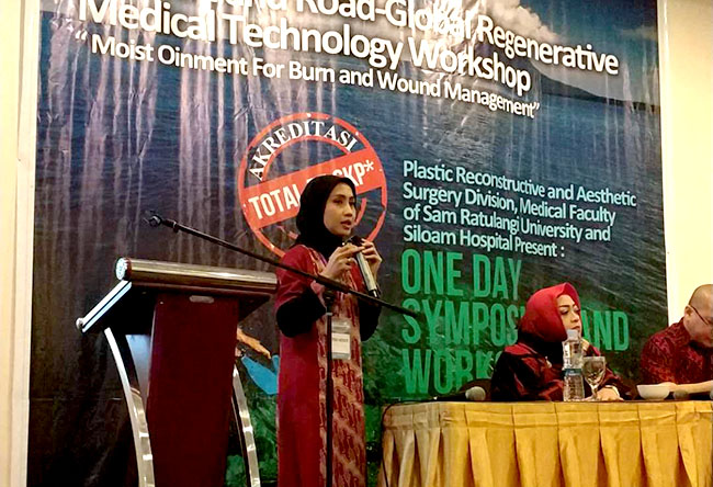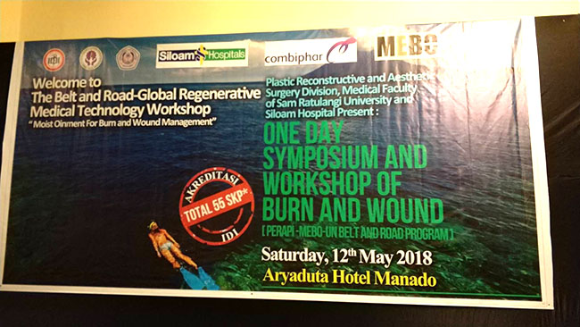 5月12日,由美寶和Combiphar主辦的第一期大型再生醫(yī)學(xué)培訓(xùn)班在印度尼西亞美娜多市成功舉辦。來自雅加達(dá)Koja整形醫(yī)院、Pelni/Rawamangun/Poli等醫(yī)院燒傷創(chuàng)瘍科、兒童醫(yī)院、武警醫(yī)院的8名再生醫(yī)學(xué)專家和美娜多當(dāng)?shù)豐iloam醫(yī)院、周邊地區(qū)社區(qū)醫(yī)院、當(dāng)?shù)孛襟w等共255人參加了本次活動,詳細(xì)報道如下: