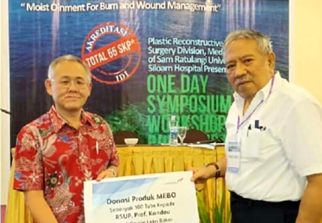 會后,由Combiphar公司總裁 Mr. Wong代表美寶國際向Siloam醫(yī)院捐贈了100支燒傷膏,旨在讓當(dāng)?shù)刎毨Щ颊咭材芟硎艿皆偕t(yī)學(xué)的成果。