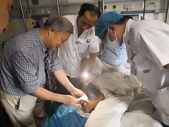 9月18日,中國中西醫(yī)結合學會燒傷專業(yè)委員會臨床部主任金黨軍教授應邀到安徽省 安慶市迎江區(qū)宿松縣中醫(yī)院進行會診和學術交流,受到醫(yī)院及患者高度評價。