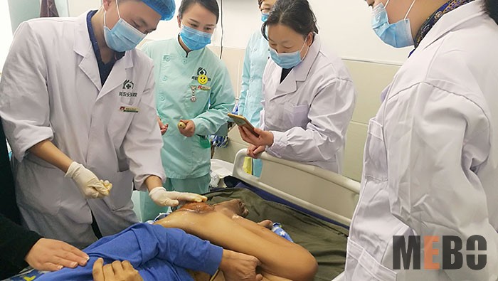 3月13日,新鄉(xiāng)市第二人民醫(yī)院燒傷診療中心主任袁福祥帶領(lǐng)團(tuán)隊(duì)4人走進(jìn)濮陽(yáng)市油田總醫(yī)院燒傷科參觀交流,王兵主任親自陪同走進(jìn)病房參觀交流MEBT技術(shù),劉韶軒副主任則講解了再生醫(yī)療技術(shù)治療方法及換藥規(guī)范流程,袁福祥主任親自查看病人使用再生醫(yī)療技術(shù)治療的效果,袁主任及團(tuán)隊(duì)對(duì)再生醫(yī)療技術(shù)的治療效果很震撼,表示以后要加大再生醫(yī)療技術(shù)的推廣和應(yīng)用。