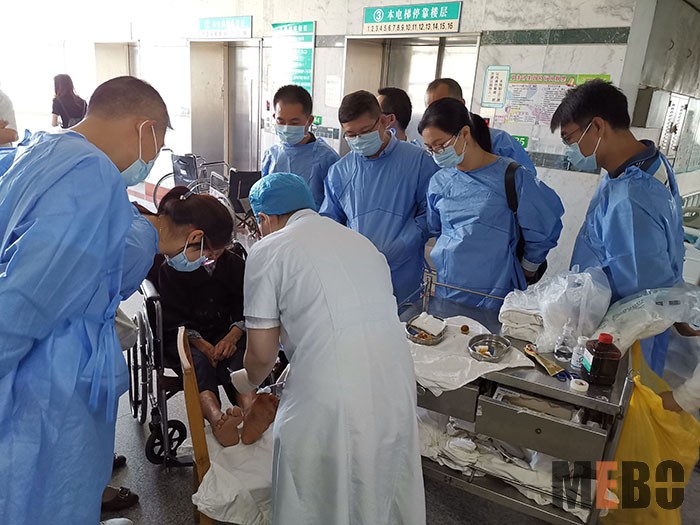 6月11日,糖尿病足的分級和再生醫(yī)療技術(shù)的治療會診在河南許昌市中心醫(yī)院內(nèi)分泌科二樓科教室舉行,內(nèi)分泌科戚紀周副主任醫(yī)師講解了《糖尿病足的分級和再生醫(yī)療技術(shù)的治療》,住院患者和多年糖尿病的患者前來參會,戚大夫用通俗易懂的語言給大家介紹了糖尿病足的嚴重性,分級,治療方法等,大家受益匪淺,隨后參會人員一起參觀了換藥過程。