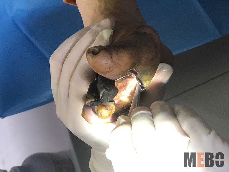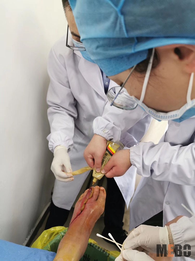11月6日,鶴煤總醫(yī)院內(nèi)分泌科楊紅玉副主任醫(yī)師受南樂縣中興醫(yī)院邀請會診糖足患者,楊大夫查閱病例后結(jié)合患者全身檢查結(jié)果現(xiàn)場交流、探查竇道、切開創(chuàng)面、減脹引流、修剪腔內(nèi)壞死組織,最后運用再生醫(yī)療技術(shù)油紗填塞無菌包扎。通過再生醫(yī)療技術(shù)的治療,希望更多的患者減少糖尿病并發(fā)癥的困惑。