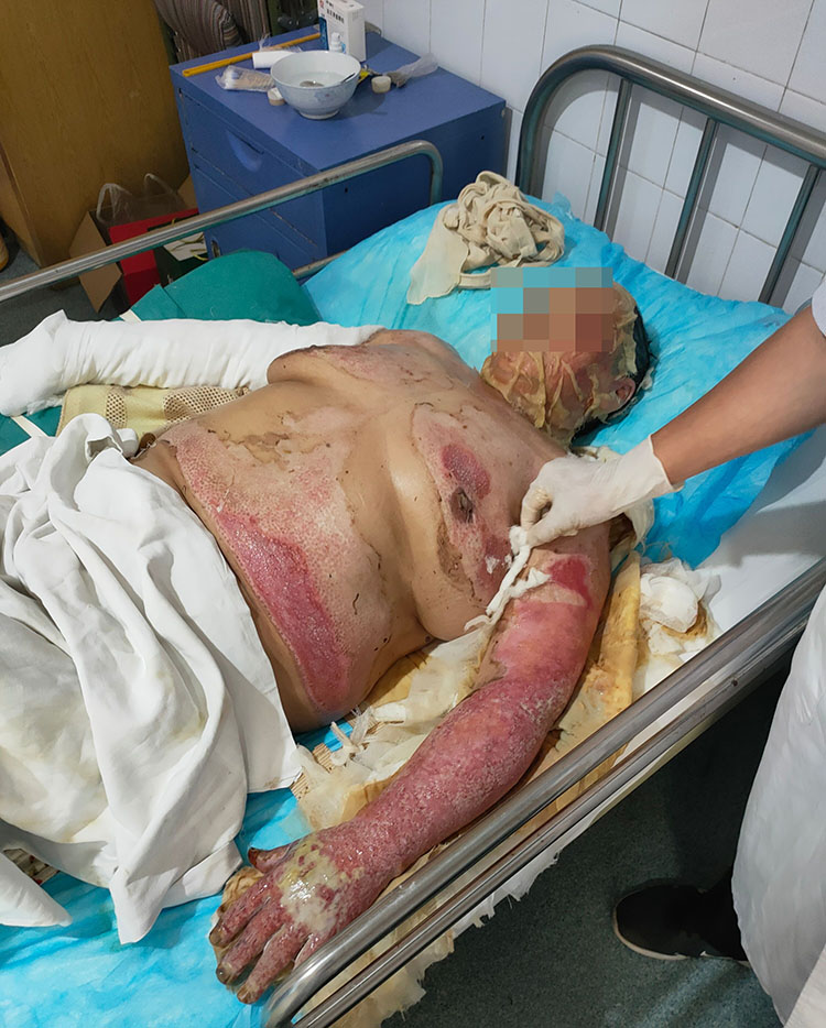 7月11日,北京榮祥再生醫(yī)學(xué)研究所副所長、《中國燒傷創(chuàng)瘍雜志》編委金黨軍教授來到伊川縣人民醫(yī)院,對一例燒傷病人進(jìn)行規(guī)范換藥指導(dǎo)示范,并對燒傷創(chuàng)面的發(fā)現(xiàn)展提出合理化建議。提高了醫(yī)生對燒傷病人無疤痕愈合的信心。