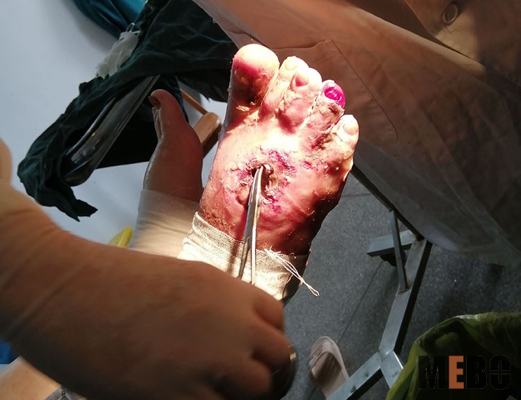 9月15日,受安徽亳州市中醫(yī)院瘡瘍科邀請(qǐng),北京榮祥再生醫(yī)學(xué)研究所副所長、中國中西醫(yī)結(jié)合學(xué)會(huì)燒傷專業(yè)委員會(huì)常務(wù)委員、《燒傷創(chuàng)瘍雜志》副總編輯、應(yīng)用燒傷創(chuàng)瘍?cè)偕t(yī)療技術(shù)治療糖尿病足領(lǐng)域?qū)<?、研究員王洪生教授到科室會(huì)診一個(gè)大面積糖尿病足患者,并為一個(gè)壞死性筋膜炎患者進(jìn)行了手術(shù),會(huì)診后得到全體醫(yī)護(hù)人員以及患者家屬的一致好評(píng)!