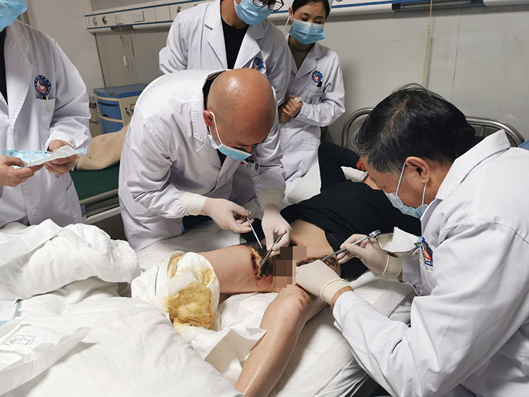 11月17日,享受國(guó)務(wù)院特殊津貼專家、中國(guó)中西醫(yī)結(jié)合燒傷專業(yè)委員會(huì)顧問(wèn)、中國(guó)研究型醫(yī)院學(xué)會(huì)創(chuàng)面防治與損傷組織修復(fù)專業(yè)委員會(huì)委員、中國(guó)中西醫(yī)結(jié)合學(xué)會(huì)再生醫(yī)療技術(shù)委員會(huì)創(chuàng)瘍學(xué)組首席專家、《中國(guó)燒傷創(chuàng)瘍雜志》常務(wù)編委、成都市郫都區(qū)人民醫(yī)院燒傷創(chuàng)瘍科學(xué)術(shù)帶頭人付子俊教授應(yīng)惠水縣中醫(yī)院的邀請(qǐng),到該院會(huì)診兩名燒傷病人,付教授親自進(jìn)行手術(shù),換藥,并結(jié)合病人給出治療方案,極大增強(qiáng)了該院應(yīng)用再生醫(yī)療技術(shù)的信心。