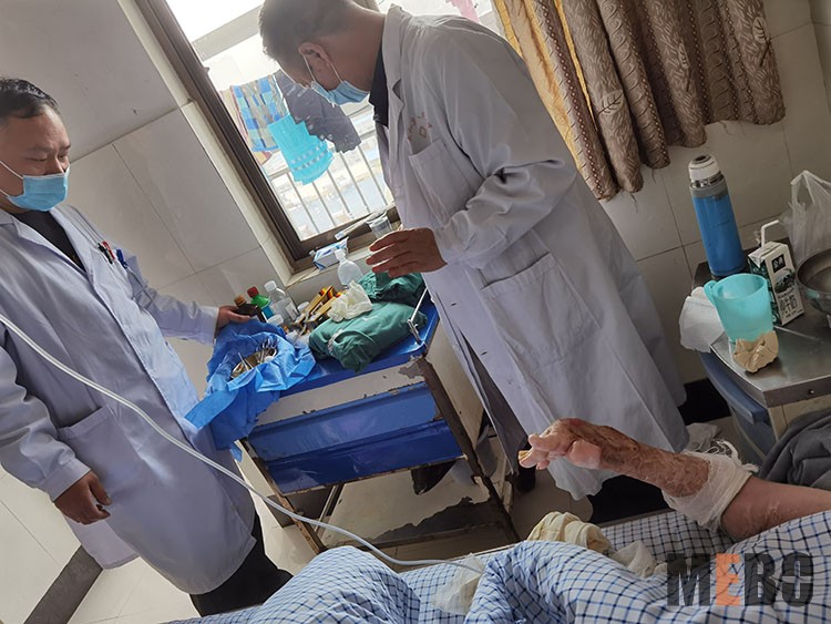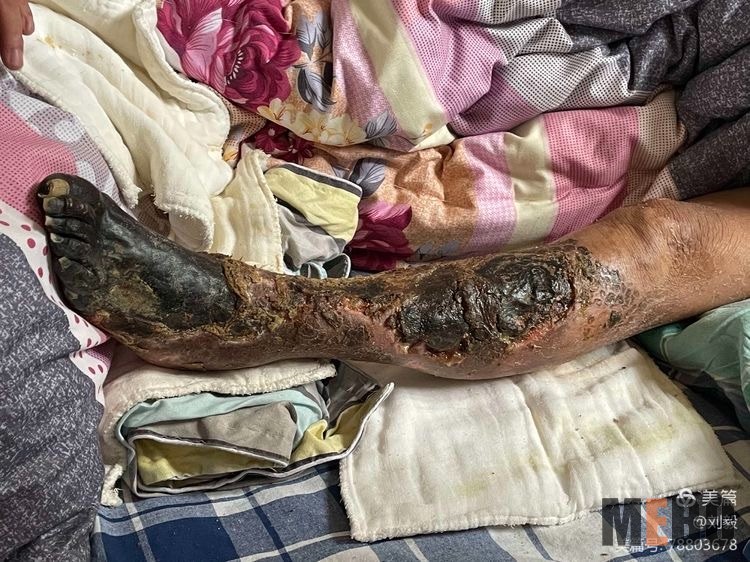2021年3月31日,聊城市第三人民醫(yī)院的普外科關(guān)中正博士以及牛新芳護士長,聯(lián)合中國紅十字基金會徐榮祥再生生命公益基金來到聊城地區(qū)進行公益義診,利用再生醫(yī)療技術(shù)及其配套產(chǎn)品濕潤燒傷膏為患者清創(chuàng)、換藥。一行人來到聊城市東昌府區(qū)姚堤口村,到曾在聊城市第三人民醫(yī)院救治的一位長期臥床90歲老人的家中,這位患者在住院期間,關(guān)中正博士運用再生醫(yī)療技術(shù)及濕潤燒傷膏為其進行治療,后期并為其縫合。