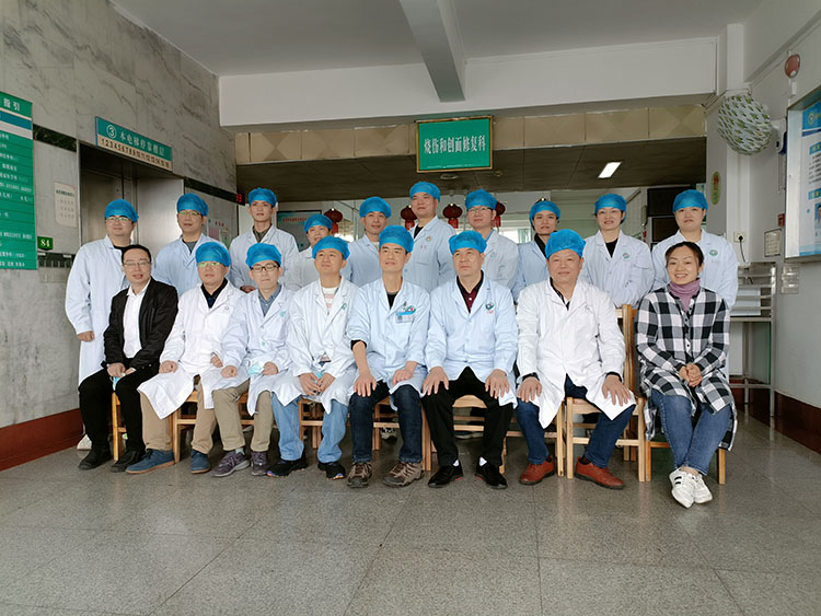 2021年4月10日,來自梅州市人民醫(yī)院、豐順縣人民醫(yī)院、汕頭澄海人民醫(yī)院、普寧市第二人民醫(yī)院、興寧市人民醫(yī)院、惠來縣人民醫(yī)院,惠來縣第二人民醫(yī)院、廣州市開發(fā)區(qū)醫(yī)院、陽西總醫(yī)院中醫(yī)醫(yī)院等相關(guān)專業(yè)的科主任、骨干醫(yī)師齊聚韶關(guān)市第一人民醫(yī)院燒傷和創(chuàng)面修復(fù)科參觀交流,通過臨床觀摩和病例分享,有利于推動再生醫(yī)療技術(shù)在糖尿病足潰瘍、壓瘡等慢性難愈性創(chuàng)面的臨床規(guī)范化應(yīng)用,造福更多患者。