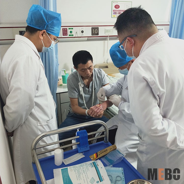 2021年4月13日,中國中西醫(yī)結(jié)合學(xué)會燒傷專業(yè)委員會委員張強教授應(yīng)邀到鐘祥市中醫(yī)醫(yī)院,鐘祥長安醫(yī)院對多名壓瘡,糖尿病足患者進行了會診,應(yīng)用再生醫(yī)療技術(shù)進行了規(guī)范換藥示范,并就創(chuàng)面情況給出了后續(xù)治療方法。