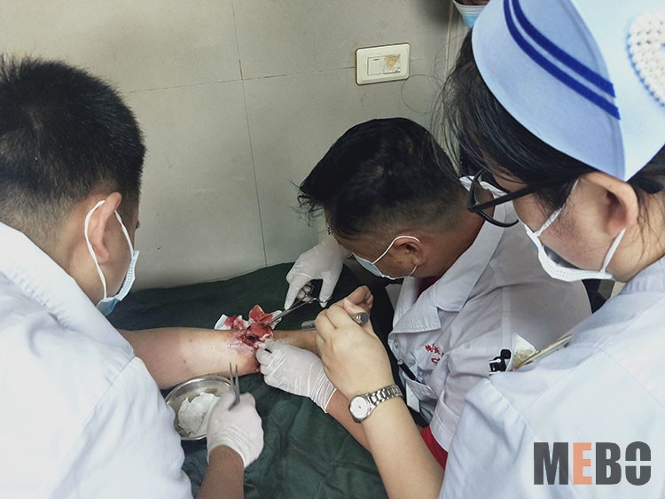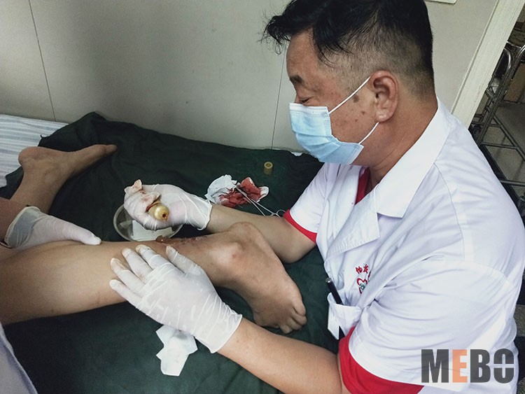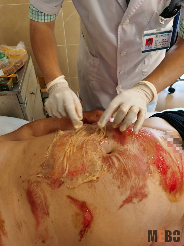 7月9日,中國中西醫(yī)結合學會燒傷專業(yè)委員會醫(yī)療部專家張強主任,應邀走訪枝江市人民醫(yī)院燒傷科,會診一例49歲男性燒傷患者,患者在6月20日于入院前一小時被鹽酸及其蒸汽燒傷雙手,雙前臂,雙小腿,雙足當時感到疼痛明顯,局部皮膚紅腫伴并有多個大小不等的水皰形成,水皰部分破損有滲出,創(chuàng)面紅潤,伴少許污染物,急診遂以“全身多處燒傷”收住燒傷科。張主任同管床醫(yī)生劉群峰和王帥共同為患者換藥,對現(xiàn)階段美寶再生醫(yī)療技術規(guī)范換藥呈現(xiàn)的理想療效給予了肯定,雙方交流了雙腳創(chuàng)面分泌物及壞死組織處理要點,后期各部位疤痕預防措施等?;颊呒凹覍賹<矣H臨會診及醫(yī)生待患如親的工作態(tài)度再次表示了深深的感謝!