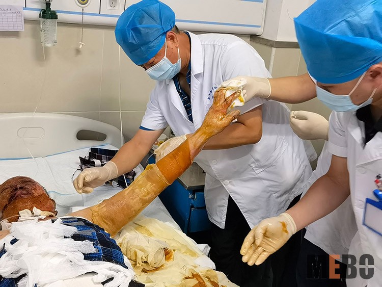 2021年7月27日,中國(guó)中西醫(yī)結(jié)合學(xué)會(huì)燒傷專業(yè)委員會(huì)醫(yī)療部張強(qiáng)主任受邀來(lái)到南京鼓樓醫(yī)院集團(tuán)安慶市石化醫(yī)院,與燒傷科楊主任和科室醫(yī)生對(duì)該科收治的兩例大面積重癥燒傷患者就再生醫(yī)療技術(shù)燒傷治療方面進(jìn)行交流,并對(duì)兩名患者進(jìn)行了會(huì)診和換藥示范,對(duì)創(chuàng)面厚痂患者行耕耘減張術(shù),以促進(jìn)創(chuàng)面原位再生及愈合,受到醫(yī)患雙方的好評(píng)!