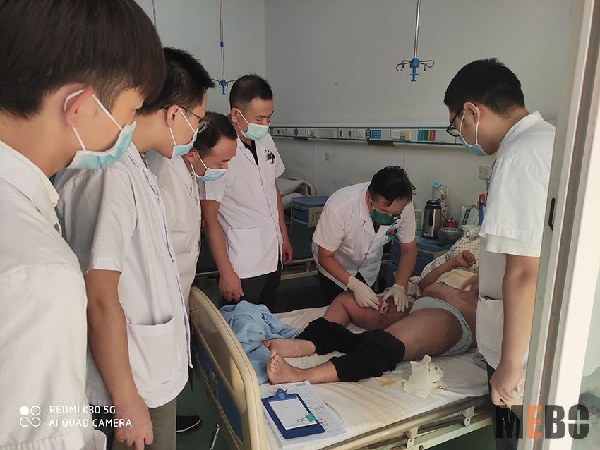 2021年9月15日,應(yīng)黃陂區(qū)中醫(yī)院外一科葉峰主任的邀請,中國中西醫(yī)結(jié)合學(xué)會(huì)燒傷專業(yè)委員會(huì)張強(qiáng)主任到該院會(huì)診病人,現(xiàn)場運(yùn)用再生醫(yī)療技術(shù)對一例慢創(chuàng)患者進(jìn)行了示范換藥,同時(shí)就換藥細(xì)節(jié)作了說明,隨后又與科里全體醫(yī)生作了交流,結(jié)合臨床病例對再生醫(yī)療技術(shù)運(yùn)用于燒傷及慢性創(chuàng)面作了深入淺出的講解,此次活動(dòng)極大加深了臨床醫(yī)生對技術(shù)的了解,增強(qiáng)了大家運(yùn)用技術(shù)處理各種創(chuàng)面的信心!