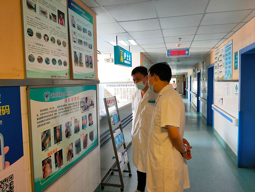2021年9月23日,洛陽中信醫(yī)院顯微外科李主任來到洛陽第十人民醫(yī)院創(chuàng)面修復(fù)外科,與科室領(lǐng)頭人張主任進(jìn)行交流,積極響應(yīng)國家衛(wèi)健委關(guān)于體表慢性難愈合創(chuàng)面的文件,就創(chuàng)面修復(fù)的未來發(fā)展進(jìn)行討論,堅(jiān)定了創(chuàng)面學(xué)科建設(shè)的信心。
