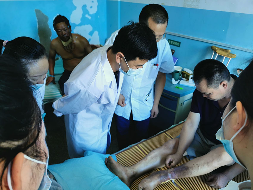9月15日,享受國務(wù)院特殊津貼專家、中國中西醫(yī)結(jié)合燒傷專業(yè)委員會(huì)顧問、中國研究型醫(yī)院學(xué)會(huì)創(chuàng)面防治與損傷組織修復(fù)專業(yè)委員會(huì)委員、中國中西醫(yī)結(jié)合學(xué)會(huì)再生醫(yī)療技術(shù)委員會(huì)創(chuàng)瘍學(xué)組首席專家、《中國燒傷創(chuàng)瘍雜志》常務(wù)編委、成都市郫都區(qū)人民醫(yī)院燒傷創(chuàng)瘍科學(xué)術(shù)帶頭人付子俊教授應(yīng)黔西林東醫(yī)院的邀請,到該院救治一例特重度燒傷病人,該病人燒傷面積60%,三度創(chuàng)面30%,付教授親自參與救治,并給出了治療方案。