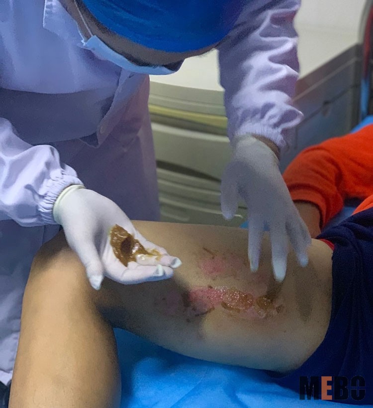 2021年11月3日,中國中西醫(yī)結(jié)合學(xué)會燒傷專業(yè)委員會醫(yī)療部張強主任,應(yīng)邀到訪長陽縣人民醫(yī)院普外科,同科室劉勇主任,黃小宇護士長,鄧邦力醫(yī)師等共同會診兩例燒傷患者。張主任示范再生醫(yī)療技術(shù)規(guī)范換藥,大家邊看邊提問,學(xué)習(xí)創(chuàng)面壞死組織清理技巧等。醫(yī)師們通過臨床實踐及和張主任面對面溝通,對美寶再生技術(shù)有了更深層次的認識。大家表示在今后工作中將不斷細化燒傷慢創(chuàng)工作,為患者做好綜合性服務(wù)!