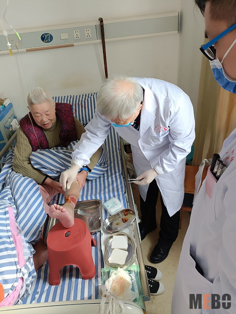 12月8日,應(yīng)江西省中西醫(yī)結(jié)合醫(yī)院血管外科馮主任肛腸科封主任邀請(qǐng),北京榮祥再生醫(yī)學(xué)研究所副所長、《中國燒傷創(chuàng)瘍雜志》編委金黨軍前往該院進(jìn)行科室交流,并對(duì)一例慢創(chuàng)患者進(jìn)行了會(huì)診,金教授親自給患者進(jìn)行清創(chuàng)換藥示范再生醫(yī)療技術(shù)治療慢創(chuàng)的規(guī)范操作,贏得了科室主任和醫(yī)生們的高度認(rèn)可。