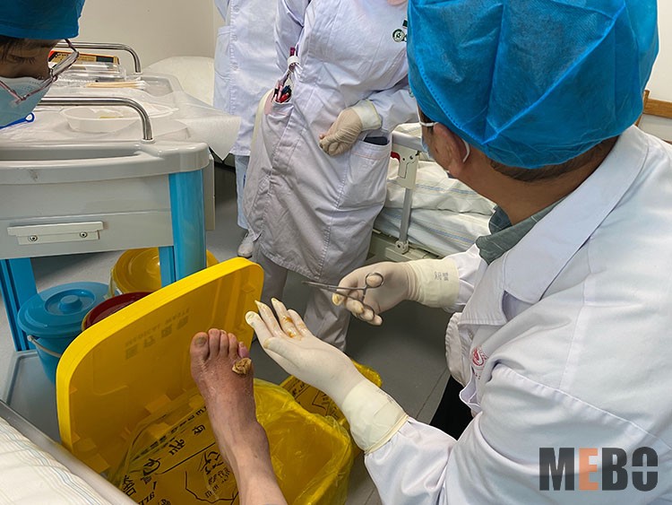 2022年1月7日,中國中西醫(yī)結(jié)合學會燒傷專業(yè)委員會醫(yī)療部張強主任受邀來到湖北省武漢市蔡甸區(qū)武漢濟和醫(yī)院神經(jīng)內(nèi)科和武漢市武昌醫(yī)院內(nèi)分泌科,會診一例基礎(chǔ)病較重的 III期壓瘡患者和一例糖足潰瘍患者。張主任對創(chuàng)面換藥進行示范性操作,并給予后續(xù)治療建議。張主任強調(diào)了在慢性創(chuàng)面治療中控制全身基礎(chǔ)疾病的基礎(chǔ)上,局部采用規(guī)范性再生醫(yī)療技術(shù)十聯(lián)合物理輔助治療方法有效縮短創(chuàng)面愈合時間和提高治療效果,得到醫(yī)護人員的認可和高度贊揚!