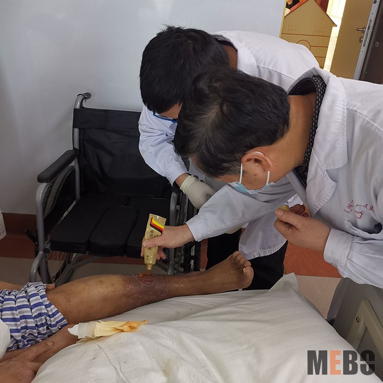 2022年2月24日,應(yīng)蕪湖市第一人民醫(yī)院燒傷科主任梁其國(guó)主任邀請(qǐng),中西醫(yī)結(jié)合會(huì)燒傷專委會(huì)委員張強(qiáng)主任會(huì)診了二例難愈合創(chuàng)面病人,其中一例特殊病例在8年前做過(guò)脾切除手術(shù), 5年前車禍至右腿脛腓骨中段骨折,術(shù)后切口感染5年才愈合,一年前出現(xiàn)左腿中部皮膚破潰久治不愈合。另一例是高血糖患者,右大腳趾壞死成為難愈合創(chuàng)面。張強(qiáng)主任現(xiàn)場(chǎng)指導(dǎo)換藥,闡述疾病發(fā)病原理并指導(dǎo)使用美寶濕潤(rùn)燒傷膏制作油紗和處理創(chuàng)面的方法??评镝t(yī)生表示受益匪淺,并在以后加強(qiáng)學(xué)習(xí),更好地為患者服務(wù)。