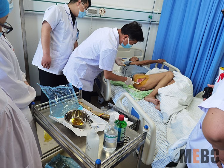 2022年6月14日,因稷山正身醫(yī)院的邀請,再生醫(yī)學(xué)知名專家、《中國燒傷創(chuàng)瘍雜志》常務(wù)編委趙瑞慶主任,急前往該院與當(dāng)?shù)蒯t(yī)務(wù)人員共同搶救因鐵水燒傷的四名工人,簡易清創(chuàng)后,全部患者用再生醫(yī)療技術(shù)進(jìn)行救治,趙主任還與醫(yī)務(wù)人員討論了每例燒傷病情,制定了詳細(xì)的再生治療方案。