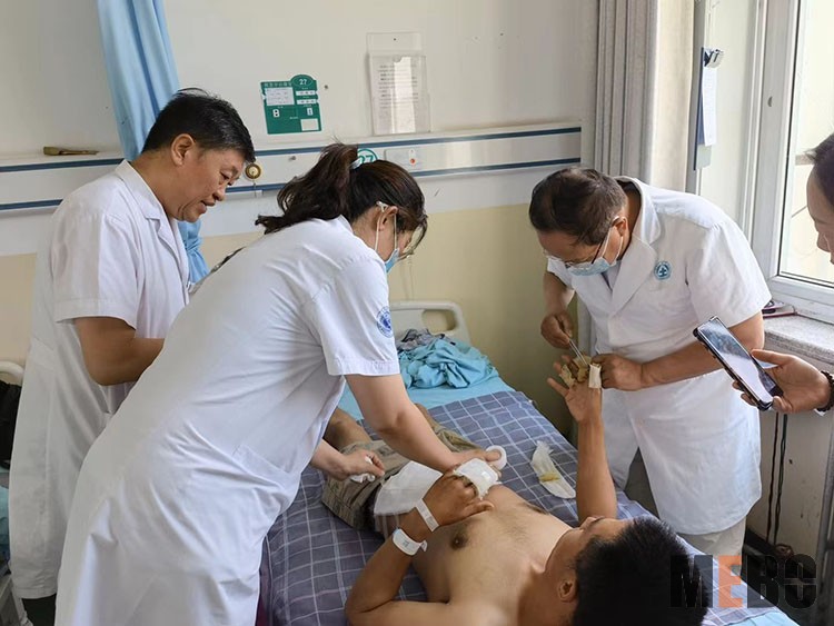 隨著高溫酷暑來臨,燒燙傷意外傷害也逐漸增多,2022年7月13-14日,中國中西醫(yī)結(jié)合學會燒傷專業(yè)委員會醫(yī)療部張強主任應邀到南京鼓樓醫(yī)院集團安慶市石化醫(yī)院,對多例大面積燒傷患者進行會診,進行再生醫(yī)療技術(shù)規(guī)范換藥示范和注意事項講解,受到醫(yī)患雙方的一致好評!