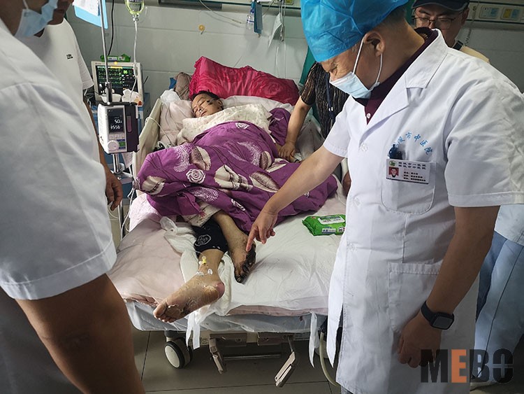 2022年8月3日,中國(guó)中西醫(yī)結(jié)合學(xué)會(huì)燒傷專(zhuān)業(yè)委員會(huì)醫(yī)療部張強(qiáng)主任,應(yīng)邀到訪湖北宜昌長(zhǎng)陽(yáng)土家族自治縣人民醫(yī)院普外科,會(huì)診兩例燒傷患者。其中一例患者77歲,外傷后臀部及雙下肢二度燒傷,入院第四天。張主任示范清創(chuàng)技巧,對(duì)后期創(chuàng)面如何處理提供了中肯方案。劉勇主任,張磊醫(yī)師和鄧邦力醫(yī)師等感謝張主任不辭勞苦教學(xué)查房,大家受益匪淺,表示在今后臨床中將美寶再生醫(yī)療技術(shù)學(xué)以致用,造?;鶎永习傩?!