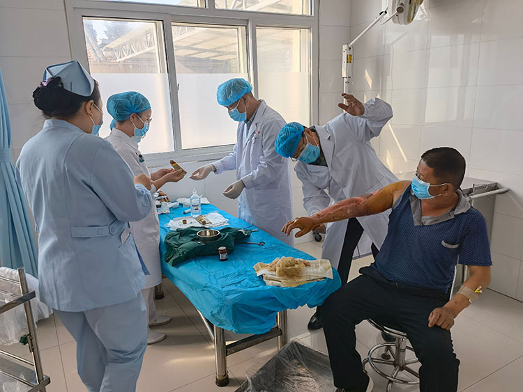 2022年9月26日,再生醫(yī)學知名專家、《中國燒傷創(chuàng)瘍雜志》常務編委趙瑞慶主任應邀到高平民生燒傷??漆t(yī)院會診兩例機動三輪車側翻水箱漏水燒傷患者,行耕耘減張手術,規(guī)范操作運用再生醫(yī)療技術換藥治療,并制定治療方案,收到醫(yī)護好評、患者滿意!